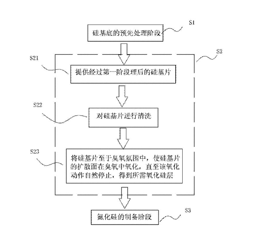 所述臭氧氧化工藝之後,還包括步驟4):在氧化矽層表麵沉積氮(dàn)化(huà)矽層。所述氮化矽層的厚度在80〜90nm之間(jiān)。