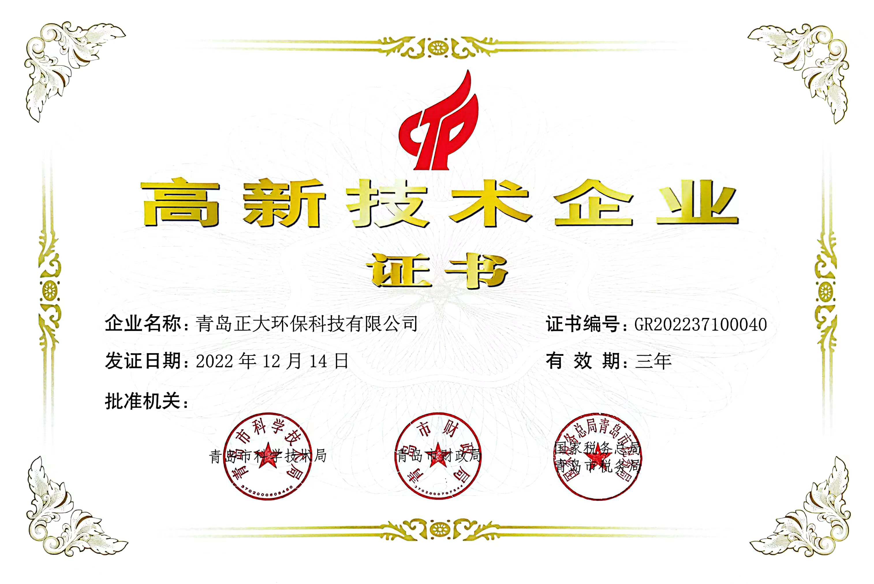 熱烈祝(zhù)賀青島91视频官网環保科技有限公司榮獲高新技術企業稱號!